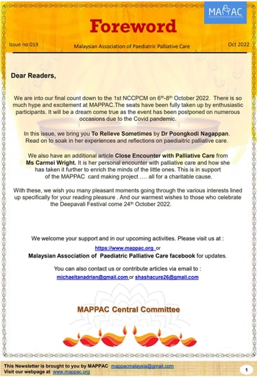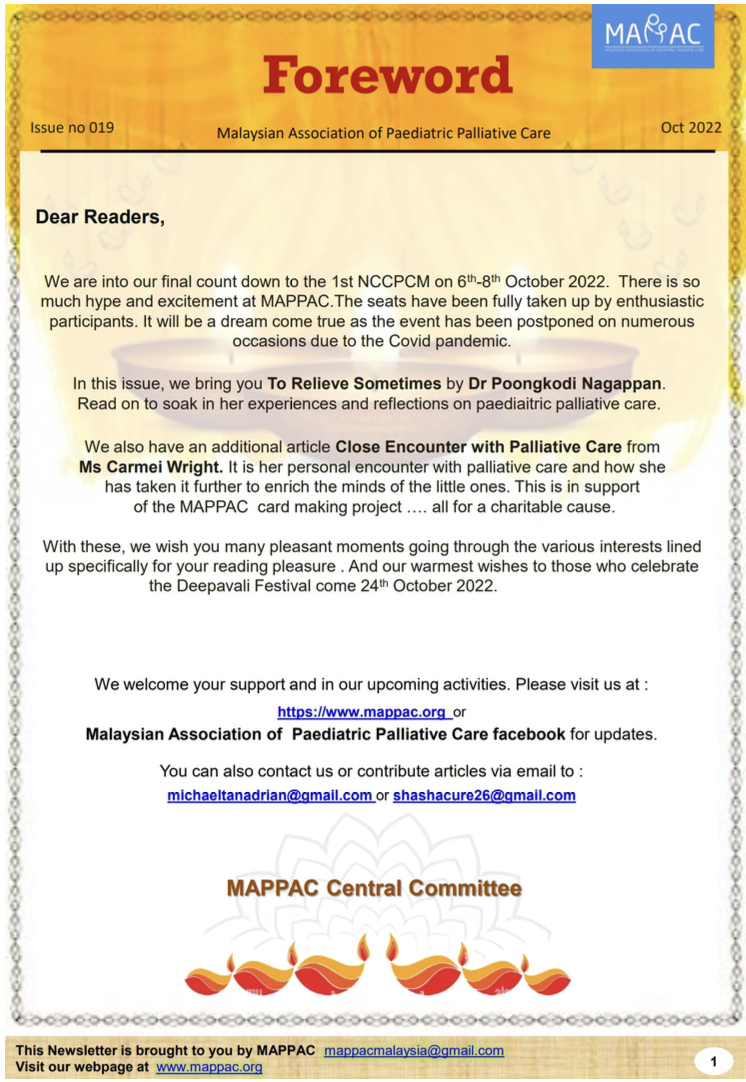 In 2022, I was approached by Dr. Shamini Subramaniam, Pediatric Palliative Care Specialist to submit an article on palliative care in Pediatric Urology. The article was published in the Malaysian Association of Pediatric Palliative Care Newsletter in October 2022 and has been updated below.
